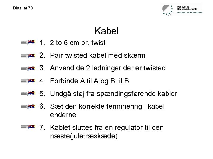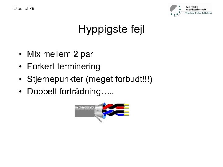 Dias af 78 Hyppigste fejl • • Mix mellem 2 par Forkert terminering Stjernepunkter (meget forbudt!!!) Dobbelt fortrådning…. .