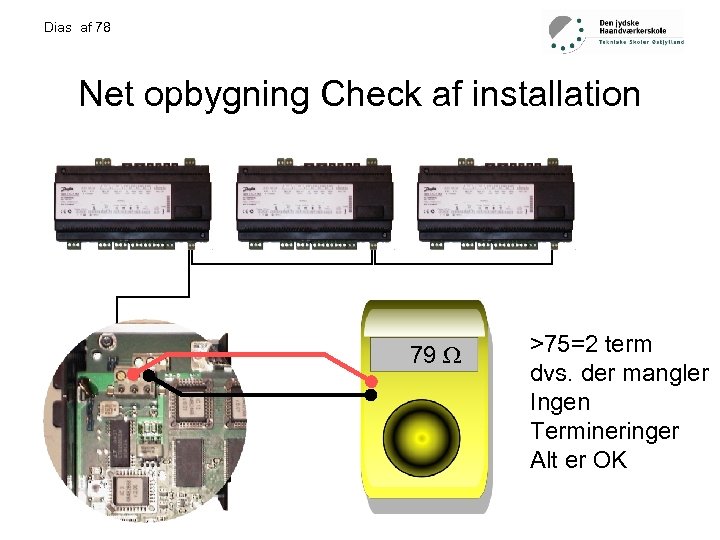 Dias af 78 Net opbygning Check af installation 79 >75=2 term dvs. der mangler Ingen Termineringer Alt er OK