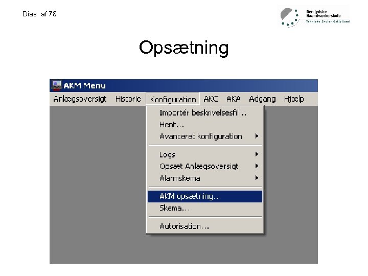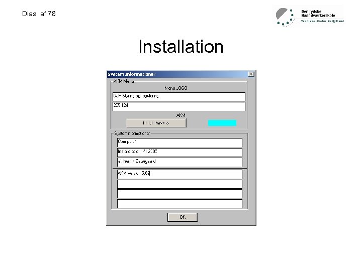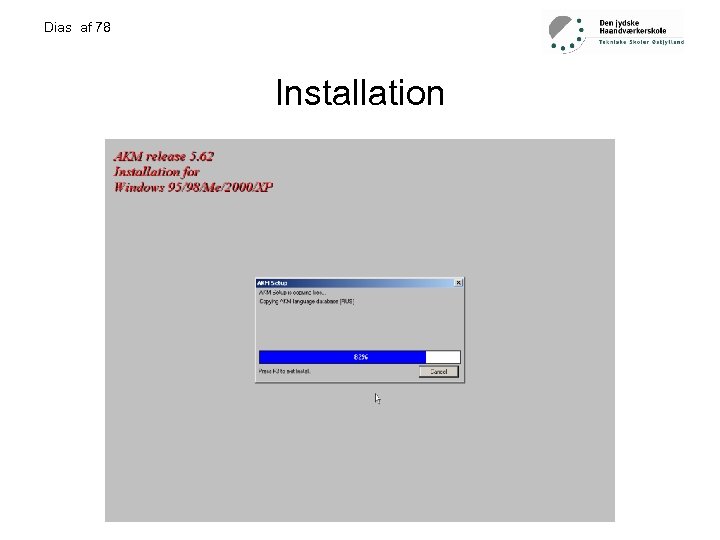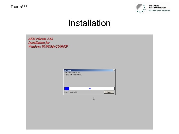 Dias af 78 Installation • • Krav til udstyr… PC med en seriel (com) port AKM software Softwarelås (HASP)