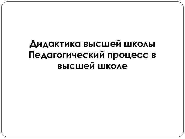 Основные вопросы 1. Понятие о дидактике высшей школы 2. Педагогический процесс 3. Закономерности и принципы реализации педагогического процесса