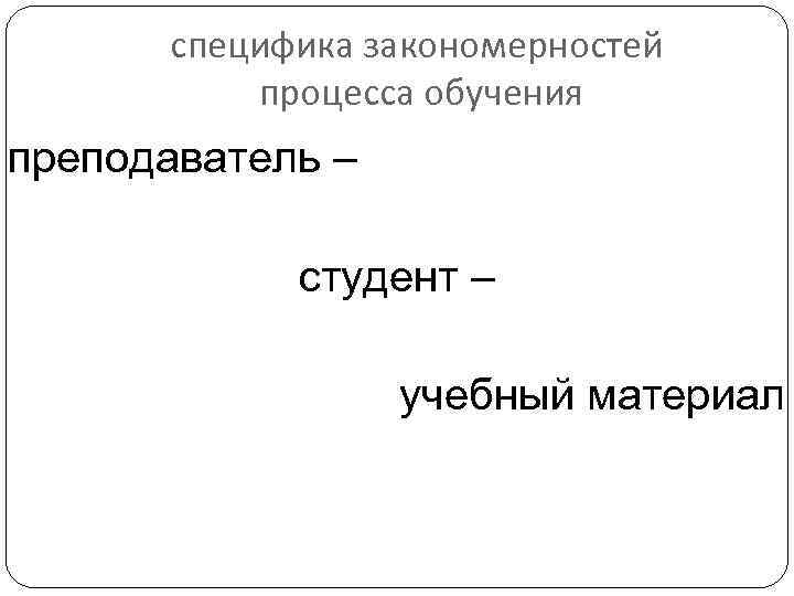 специфика закономерностей процесса обучения преподаватель – студент – учебный материал