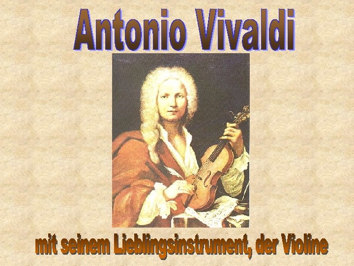 - Geboren am 04. 03. 1678 in Venedig. - wurde 1703 als 25 -jähriger zum Priester geweiht - Im selben Jahr erhielt er die Anstellung als Chor- und Orchesterdirigent am Ospedale della Piettà in Venedig bis 1740. Während dieser Zeit reiste er viel durch die Welt. - 1740 gab er die Stelle in Venedig auf, da er krank war, danach versuchte er in Wien ein sorgenfreies Leben zu führen. - Durch den Tod von Karl VI. konnte er keine finanzielle Unterstützung bekommen. -Vivaldi starb am 28. 07. 1741 völlig verarmt in Wien und wurde noch am selben Tag in einem Armengrab beerdigt.