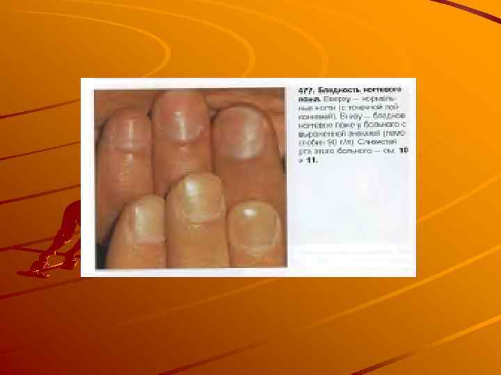 Клиническая картина. Проявление болезни, как это вытекает из схемы патогенеза, складывается из следующих синдромов: 1. циркуляторно гипоксического (при выраженной анемии и кислород ном голодании тканей); 2. поражения эпителиальных тканей (гастроэнтерологические расстройства, трофические нарушения кожи и ее дериватов); 3. гематологического (анемия гипохромного типа и признаки дефицита железа).