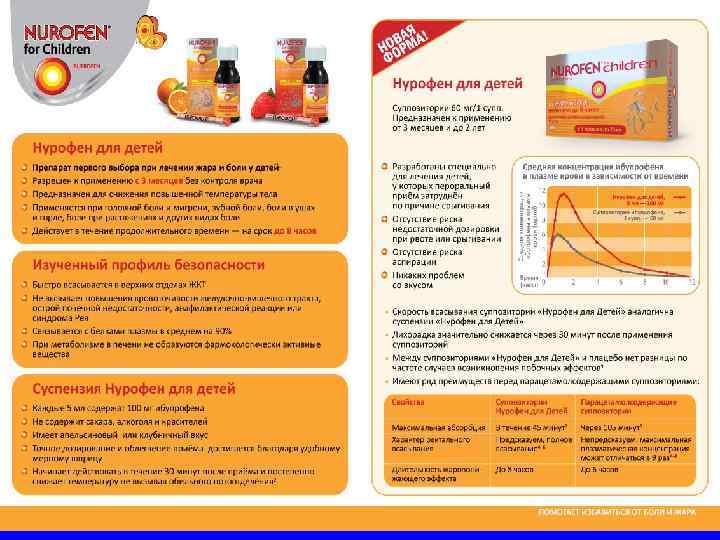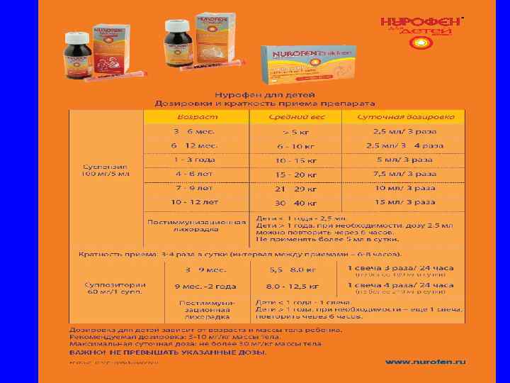 Жаропонижающий эффект нурофена • Начинается через 30 минут. • По сравнению с парацетамолом более интенсивен и более продолжителен. Белоусов Ю. Б. с соавт. 1997. Коровина Н. А. с соавт. 2006.