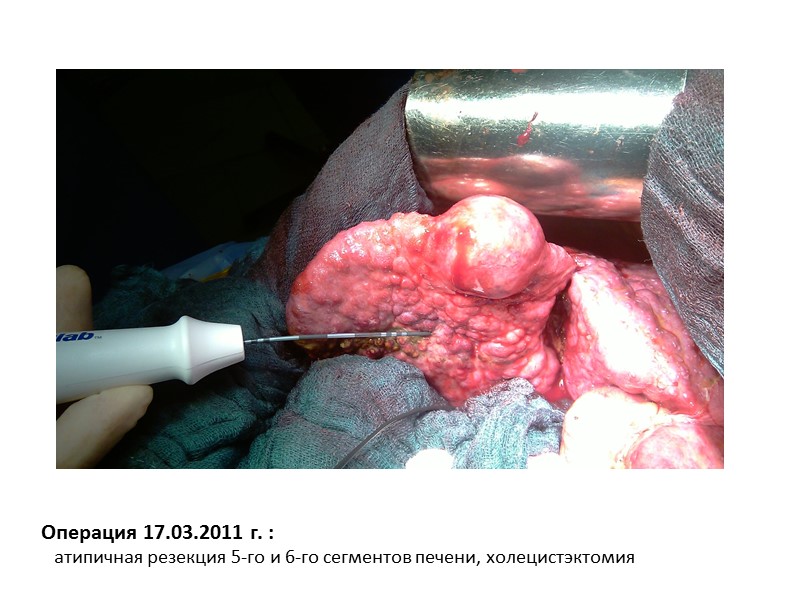 Операция 17.03.2011 г. : атипичная резекция 5-го и 6-го сегментов печени, холецистэктомия