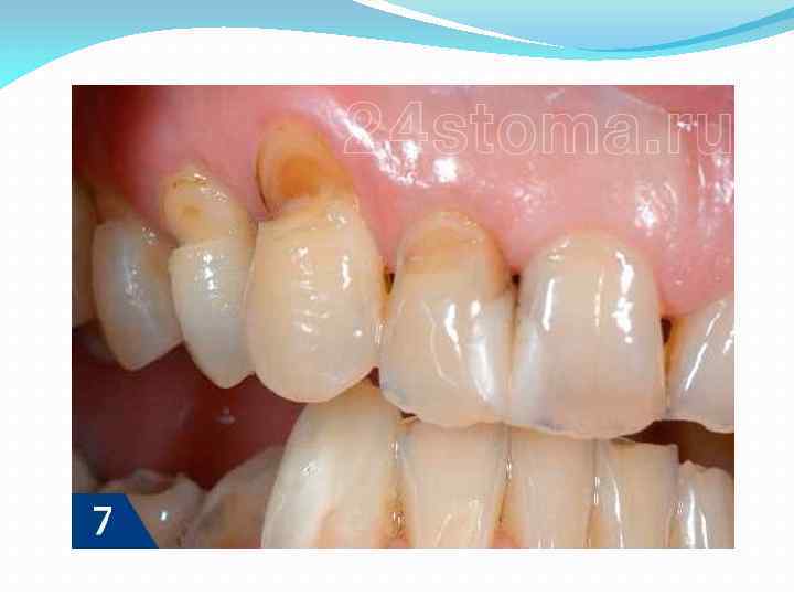 Клиновидные дефекты располагаются в пришеечной области зубов. По виду напоминает клин со стенками направленными острием к пульповой камере. Как правило, не сопровождается болевыми ощущениями. Постепенно прогрессирует и может привести к вскрытию пульповой камеры.