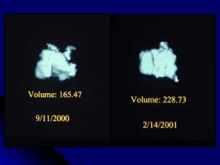 Динамическая КТ > 20 HU — Биопсия / Выбор лечения 20 Н U – порог усиления (можно предполагать «зло» в 90%, в 10% — м. б. «добро» ) > 10 HU – н аблюдение 10 -20 HU? • Тест (+) в 95%