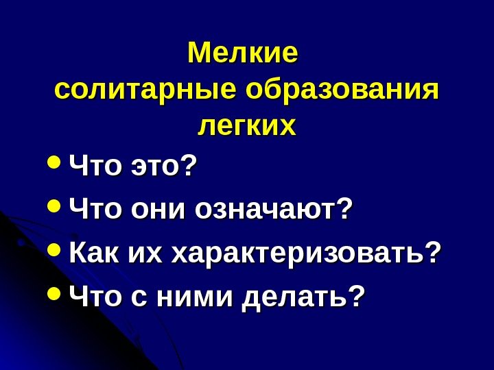 Мелкие солитарные образования легких Что это? Что они означают? Как их характеризовать? Что с ними делать?