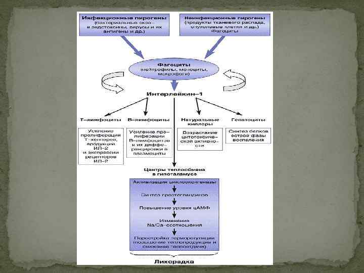 Лихорадка (лат. febris, гр. pyreksia) – типовой патологический процесс, возникающий при воздействии пирогенов на теплорегулирующий центр, характеризующийся активной временной перестройкой терморегуляции и направленный на повышение температуры внутренней среды организма вне зависимости от температуры окружающей среды.
