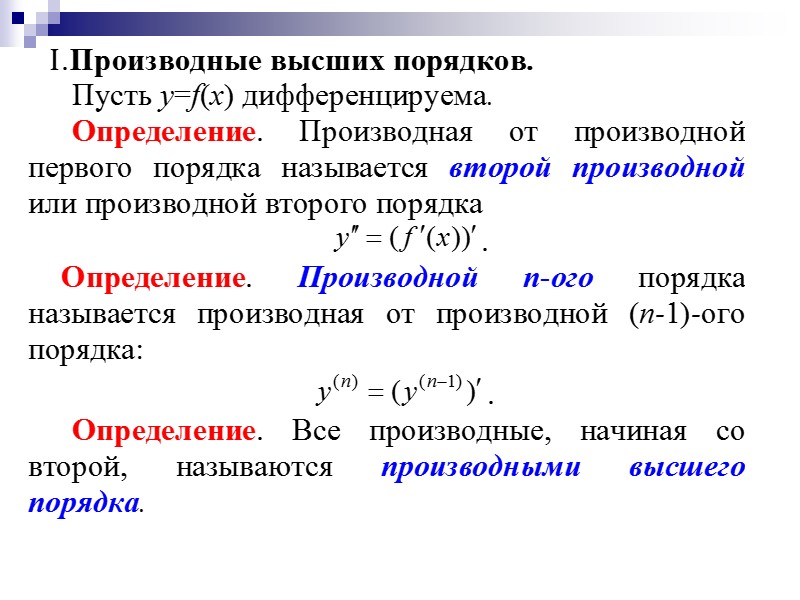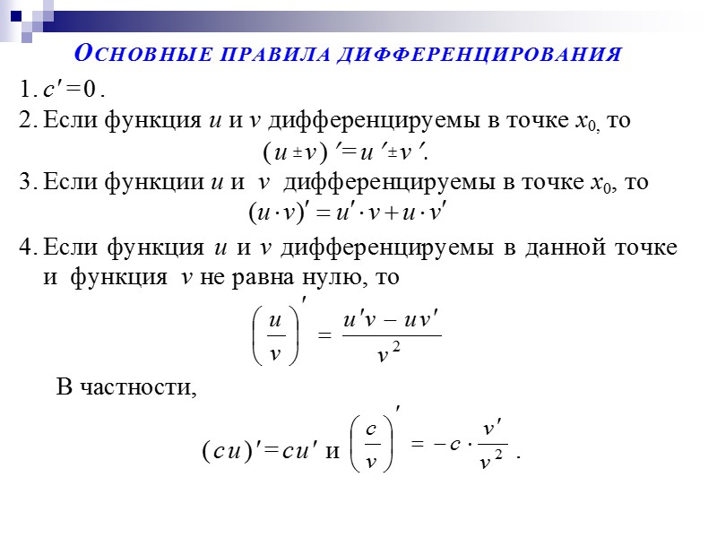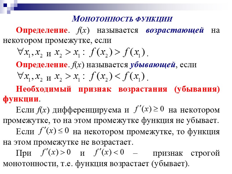 Дифференциальное исчисление функции одной переменной Основные теоремы о Скачать презентацию Дифференциальное исчисление функции одной переменной Основные теоремы о 16-ponyatie_differenciala.ppt Количество слайдов: 37 Дифференциальное исчисление функции одной переменной Основные теоремы о дифференцируемых функциях Правило Лопиталя Понятие дифференциала функции Производные и дифференциалы высших порядков Применение дифференциального исчисления для исследования функции