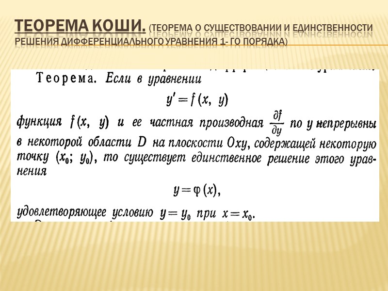 Теорема Коши. (теорема о существовании и единственности решения дифференциального уравнения 1- го порядка)