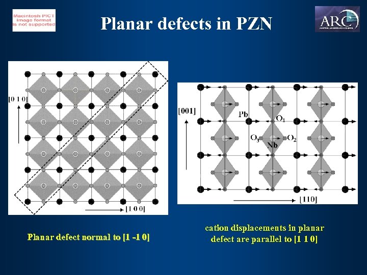 Planar defects in PZN Planar defect normal to [1 -1 0] cation displacements in planar defect are parallel to [1 1 0]