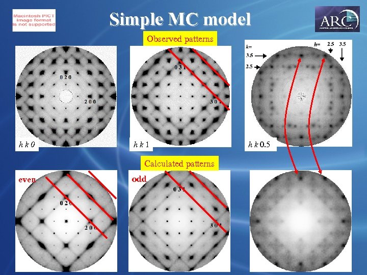 Simple MC model Observed patterns hk 0 hk 1 Calculated patterns even odd h k 0. 5