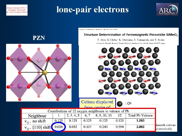 lone-pair electrons PZN Cations displaced from centre of coordination polyhedra