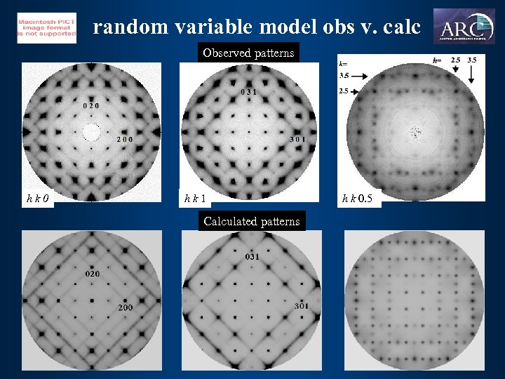random variable model obs v. calc Observed patterns hk 0 hk 1 Calculated patterns h k 0. 5