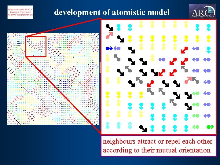 development of atomistic model [100] Linear features do neighbours attract in successive [010] persist or repel each other according to their mutual orientation layers
