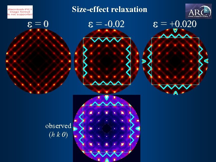 Size-effect relaxation e=0 observed (h k 0) e = -0. 02 e = +0. 020