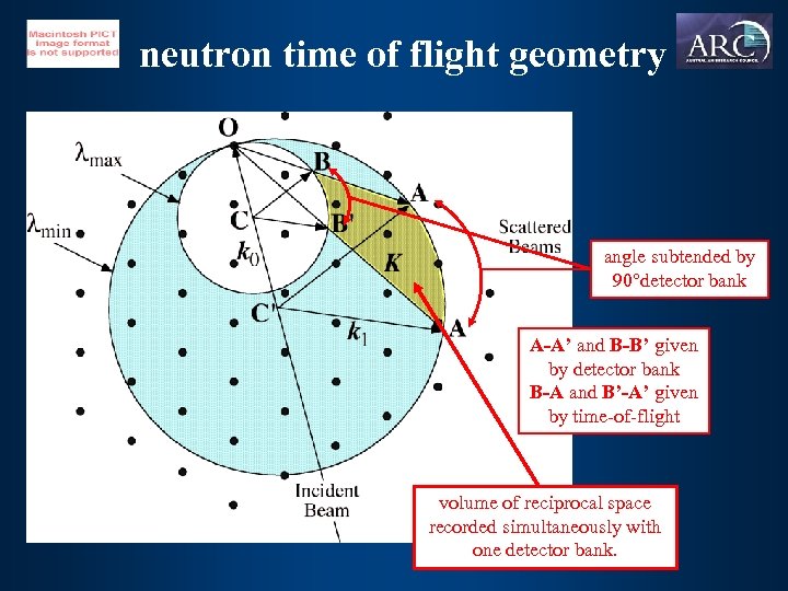 neutron time of flight geometry angle subtended by 90 detector bank A-A’ and B-B’ given by detector bank B-A and B’-A’ given by time-of-flight volume of reciprocal space recorded simultaneously with one detector bank.