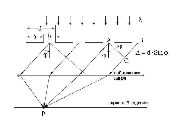 - расстояние вдоль экрана наблюдения, - расстояние между линиями на экране