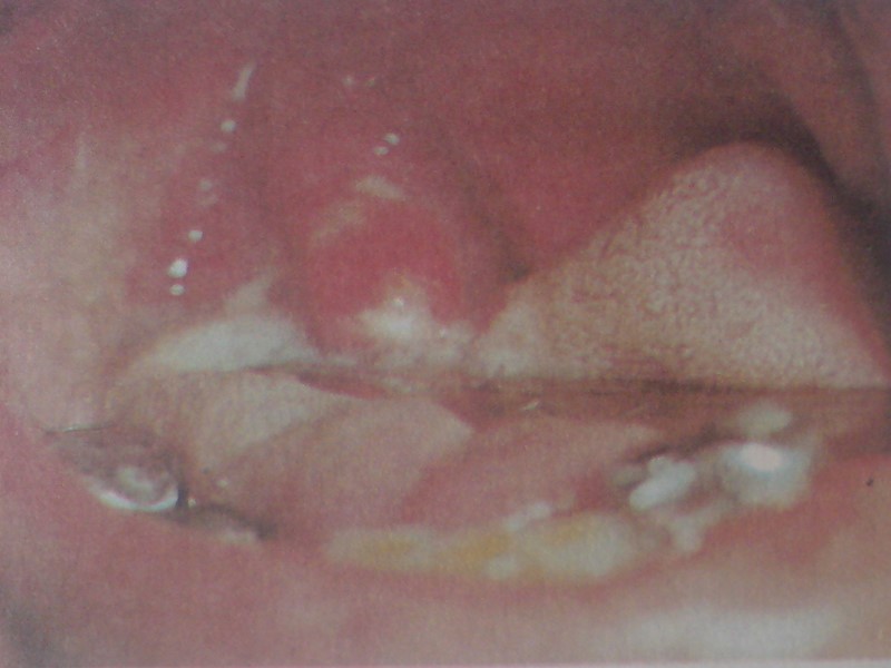 Дифтерийная пленка Появляются и формируются на миндалинах к концу суток, вначале в виде выпота-желе, постепенно уплотняясь, превращаясь в классическую пленку, трудно снимаемую, оставляющую кровоточащую поверхность. Пленки могут быть точечными, в виде островков, или сплошной пленки, покрывающей частично или целиком всю миндалину. Пленки имеют белый или серый цвет, окраска иногда зависит от натуральных красителей пищи и варьирует от желтых до синеватых оттенков. Пленки постепенно уплотняясь, приобретают бугристый характер – края более тонкие, центр выбухает над поверхностью миндалин в виде «гребня петуха».