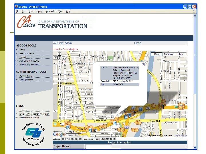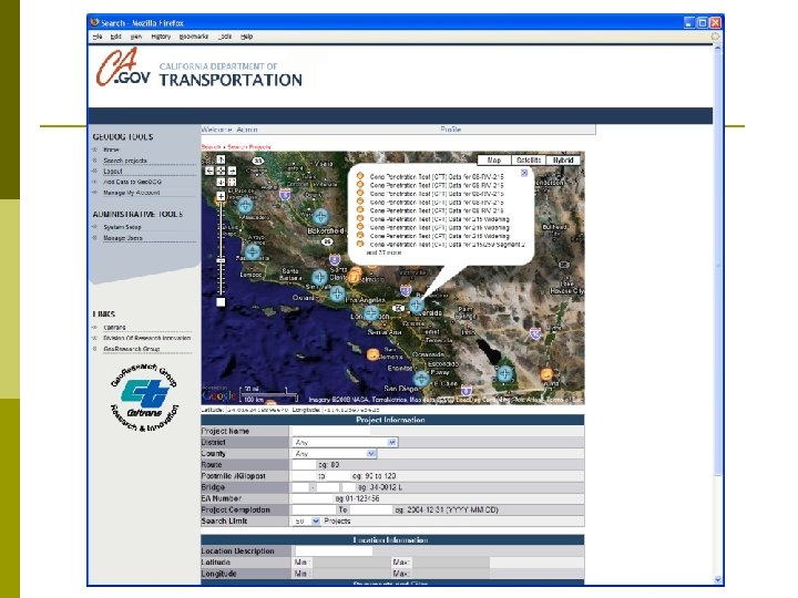 Caltrans Experience 30, 000 project files 2 million documents 300 projects/year 80 years of data Difficult to access information
