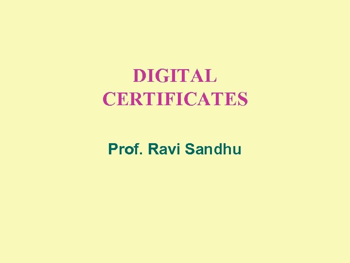 DIGITAL CERTIFICATES Prof. Ravi Sandhu