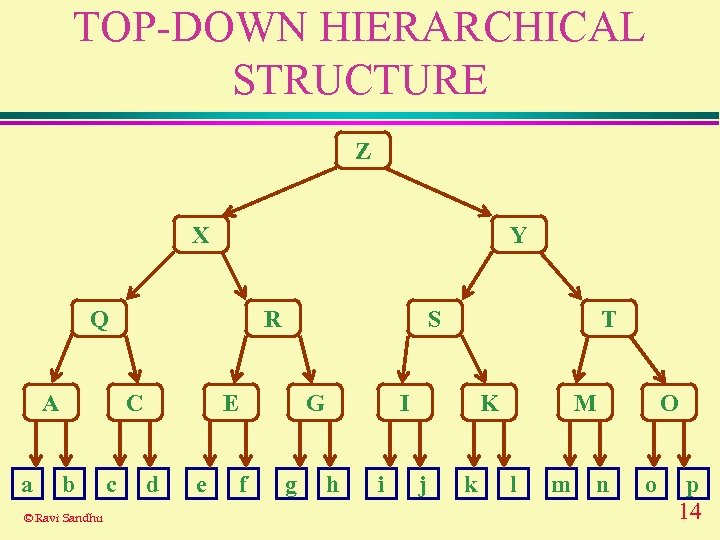 TOP-DOWN HIERARCHICAL STRUCTURE Z X Y Q A a R C b © Ravi Sandhu c S E d e G f g T I h i K j k M l m O n o p 14