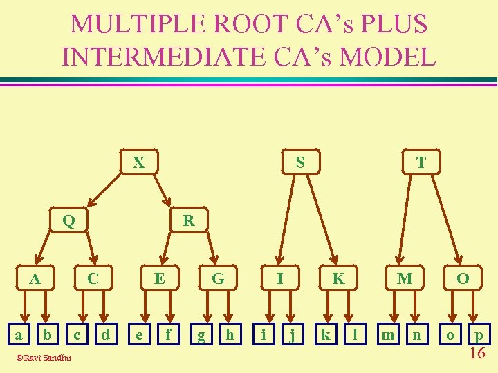 MULTIPLE ROOT CA’s PLUS INTERMEDIATE CA’s MODEL X S Q A a R C b © Ravi Sandhu c T E d e G f g I h i K j k M l m O n o p 16
