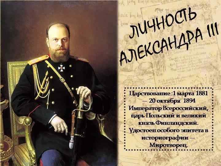 ТЕМА: НАЧАЛО ЦАРСТВОВАНИЯ АЛЕКСАНДРА III