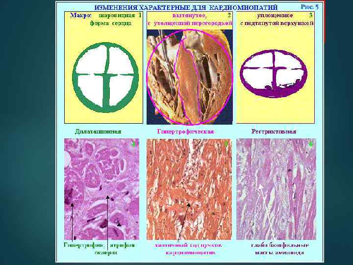Клиническая классификация Дилатационная Гипертрофическая Рестриктивная Аритмогенная дисплазия правого желудочка (болезнь Фонтана) прогрессирующее дилатацией и нарушением сократимости ЛЖ или обоих желудочков гипертрофия ЛЖ и/или ПЖ сердца при сохраненной сократительной функции нарушение диастолического наполнения ЛЖ и/или ПЖ замещение миокарда ПЖ фиброзно-жировой тканью, приводящее к тяжелым аритмиям. Неклассифицируемые КМП.