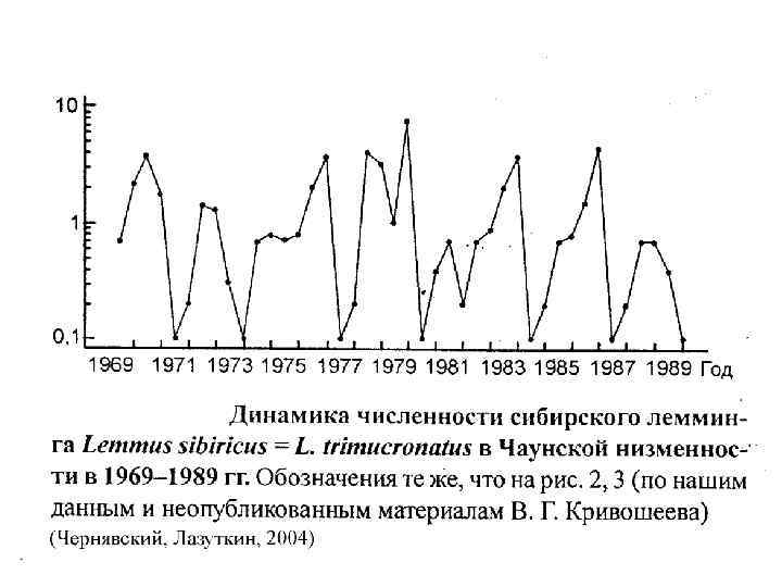 • С. А. Северцов (1941, Наумов, 1954) выделял три типа динамики численности – стабильный, лабильный и эфемерный • Стабильный – виды с большой продолжительностью жизни, низкой плодовитостью, поздней половозрелостью. Период 10 -20 лет (копытные, китообразные, гоминиды, орлы). Колебания в разы • Лабильный – более раннее созревание, относительно некрупные размеры (некоторые грызуны, зайцеобразные, некоторые хищные). Период – 5 -10 лет, колебания в 10 раз. • Эфемерный – короткоживущие виды, большая плодовитость. Период – 3 -10 лет, колебания в 100 раз.