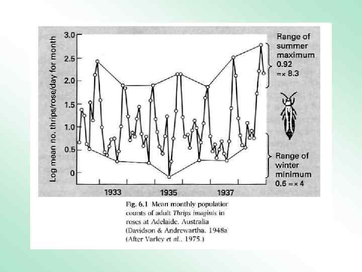 Концепции влияния факторов на динамику численности популяций • Регуляционизм – А. Николсон (1933, 1957). • Стохастизм – Г. Андреварта, Л. Берч (1954) • Концепция саморегулирования – Д. Читти (1960)