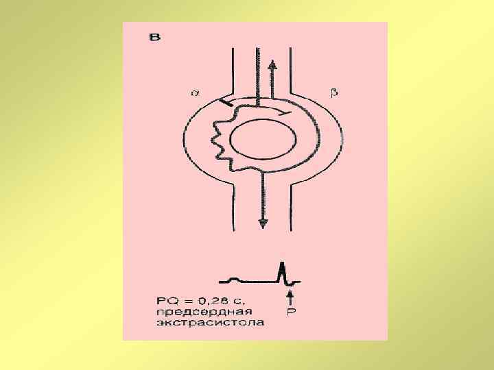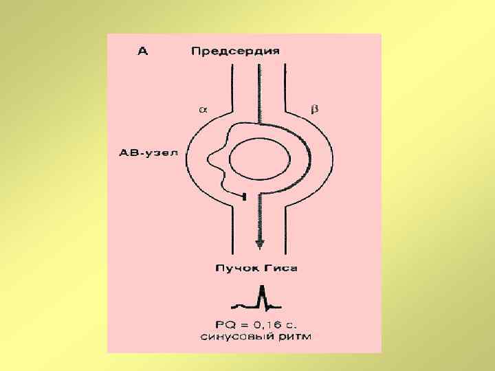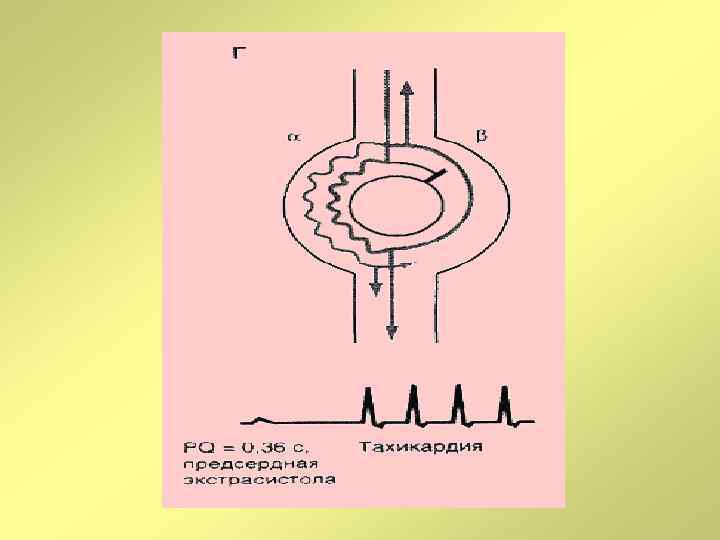 Схема проведения импульса в норме и при патологии Норма Односторонний блок (аритмия) миофибриллы Замедленное проведение антидромных импульсов