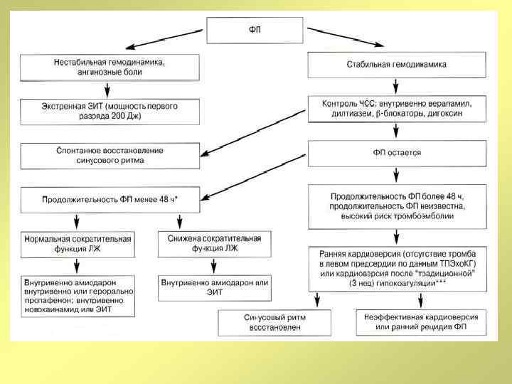 Аритмия. Используются 2 стратегии: Контроль частоты • Дигиталис • b-блокаторы • БКК (верапамил) • омега-3 -полиненасыщенные жирные кислоты Контроль ритма • Пропафенон