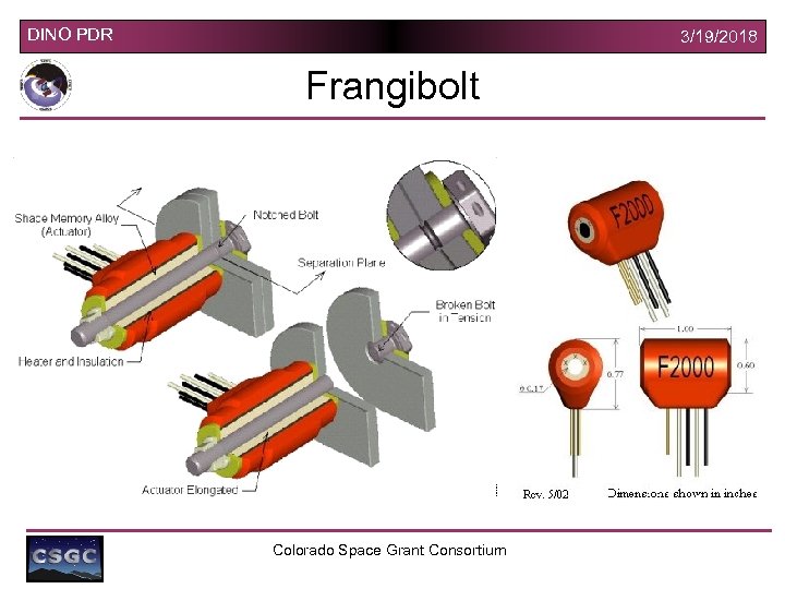 DINO PDR 3/19/2018 Frangibolt Colorado Space Grant Consortium