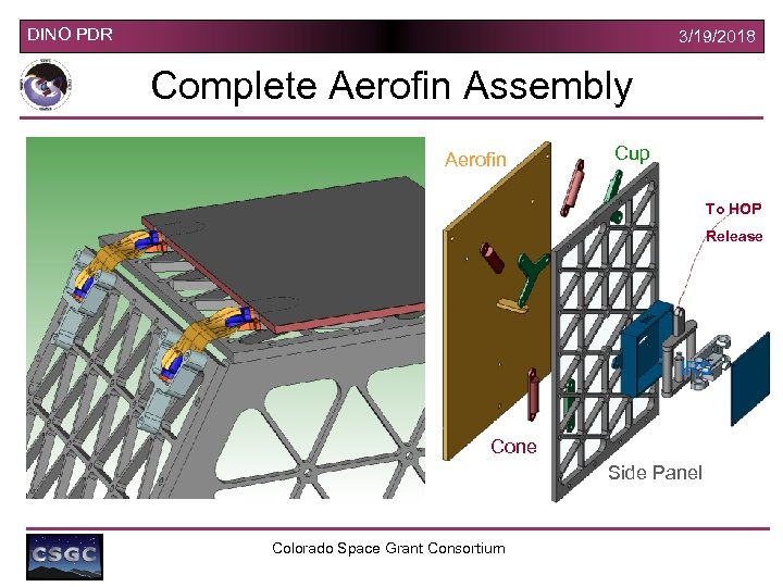 DINO PDR 3/19/2018 Complete Aerofin Assembly Aerofin Cup To HOP Release IRS Cone Side Panel Colorado Space Grant Consortium