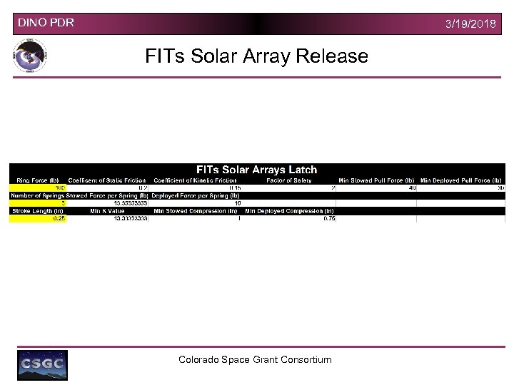 DINO PDR 3/19/2018 FITs Solar Array Release Colorado Space Grant Consortium