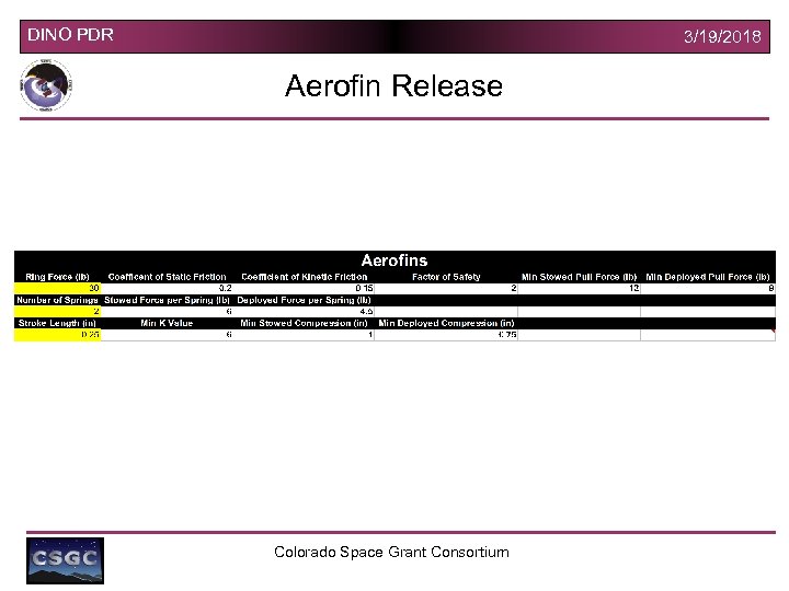 DINO PDR 3/19/2018 Aerofin Release Colorado Space Grant Consortium