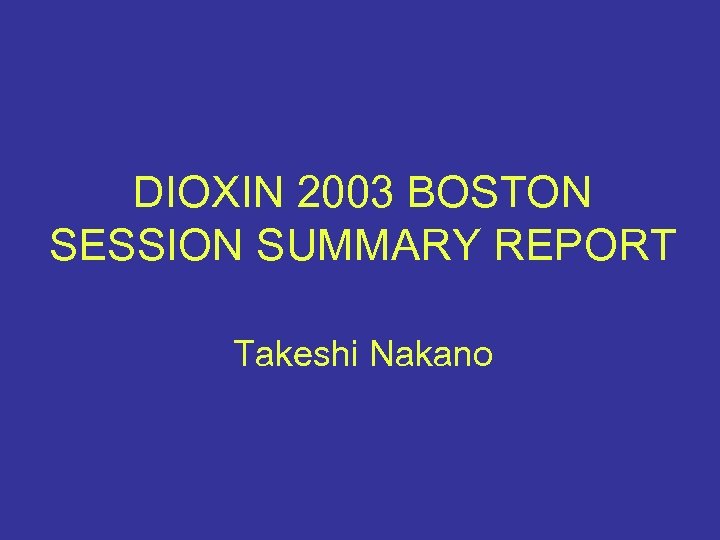 DIOXIN 2003 BOSTON SESSION SUMMARY REPORT Takeshi Nakano