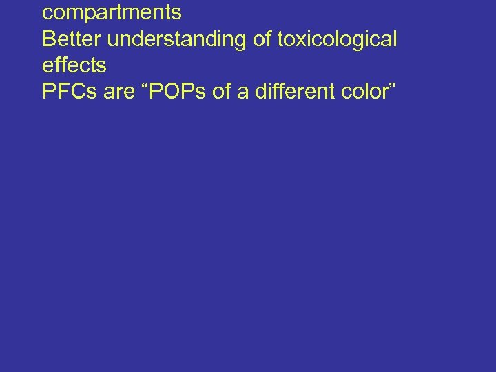 compartments Better understanding of toxicological effects PFCs are “POPs of a different color”