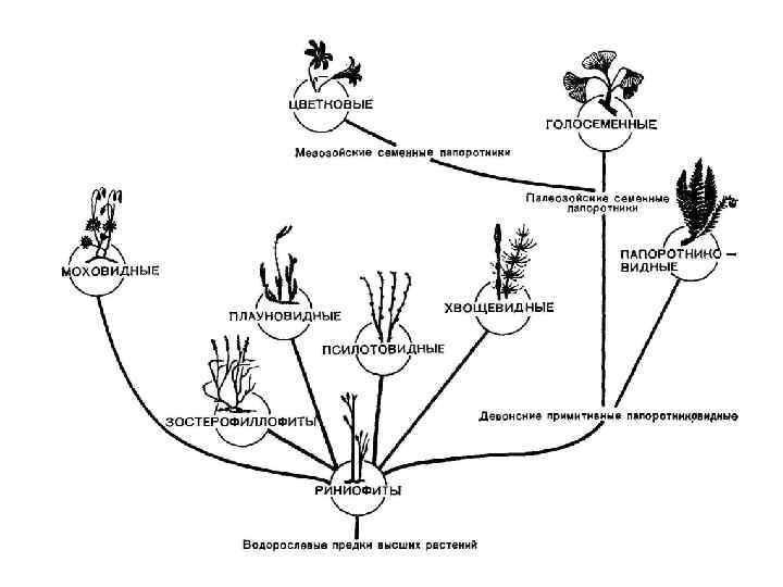 Эволюция хвощевидных • Отдел хвощевидных - отдельная фила высших растений с особой морфологией листьев, членистыми побегами, особым расположением спорангиев и многожгутиковыми сперматозоидами. Их далекими предками были какие-то древние риниофиты. Хвощевидные рано отделились от общего корня и представляют довольно обособленный отдел высших споровых растений.