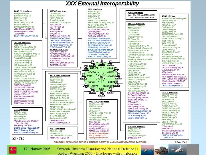 NCW Roadmap – 2005, (page 8) Force Generation and Sustainment in 2020 Key logistic function networks within the National Support Area (NSA) are linked with those in theatre, and provide connectivity and a collaborative ability with industry and coalition partners. • Commanders have an end-to-end visibility of the logistic system providing the ability to rapidly and effectively prioritise scarce resources required to generate and sustain deployed force elements. • Automated ordering and replenishment takes place as supplies and ordnance are consumed by platforms and field units. • The deployed force has minimised its vulnerabilities and greatly enhanced its mobility through more effective reach back, optimum force presence and the precision sustainment for the majority of logistic requirements. The target states outlined are necessarily broad in nature. While they outline the ADF’s desired NCW end state, they do not dictate how this will be achieved. D. HURLEY, AO, DSC, Lieutenant General, Chief Capability Development Group