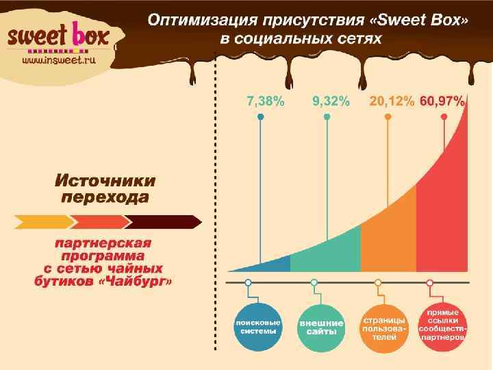 Направления реализации Программы v Проведение специальных мероприятий в рамках реализации совместной партнерской Программы (в т. ч. кобрендинг в сети Интернет); v Совершенствование и продвижение интернетсайта «Sweet Box» ; v Оптимизация присутствия «Sweet Box» в социальных сетях