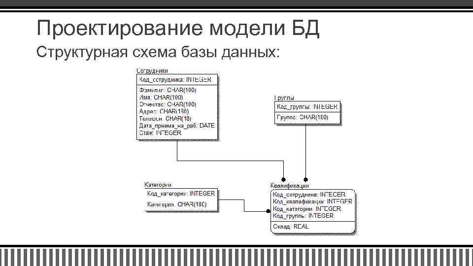 Проектирование модели БД Структурная схема базы данных: