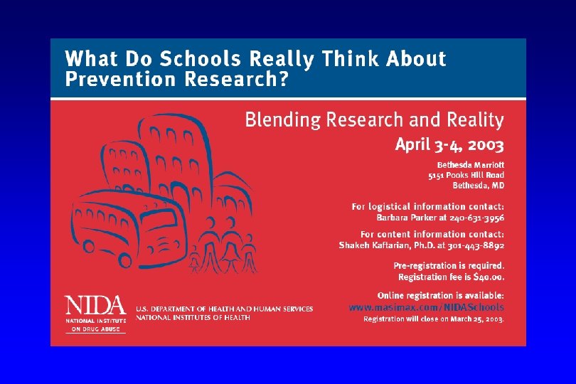 What’s My Background? M. D. from National University of Mexico Residency in Psychiatry at New York University 20 Years Working in Addiction Research Prior to Becoming NIDA Director… Associate Director for Life Sciences, Brookhaven National Laboratory (BNL) Chairman, Medical Department, BNL Director of Nuclear Medicine, BNL Director of the NIDA-DOE Regional Neuroimaging Center at BNL Professor, Department of Psychiatry, SUNY-Stony Brook Associate Dean for the Medical School, SUNY-Stony Brook