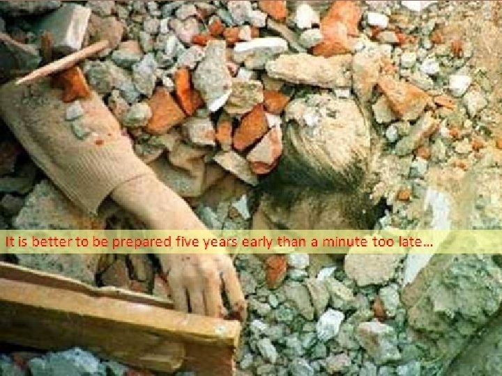 Eartquake Intensity – Magnitude in Richter Scale Sl No Type Characteristics of Tremors Mgt in Richter I Instrumental Seismographic Very Low II Feeble Sensitive (people) 3. 5 III Slight 4. 2 IV Moderate Walking, Loose objects 4. 3 V Rather Strong Awakened 4. 8 VI Strong Trees sway ect 4. 9 --5. 4 VII Very Strong Cracks 5. 5— 6. 1 VIII Destructive Damage to constructions 6. 2 IX Ruinous House collapse 6. 9 X Disastrous Ground Cracks 7. 0— 7. 3 XI Very Disastrous Disrupts all services 7. 4— 8. 1 XII Catastrophic Total destruction Above 8. 1