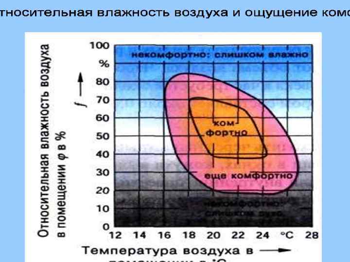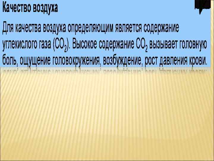 ОПТИМАЛЬНЫЕ И ДОПУСТИМЫЕ НОРМЫ ТЕМПЕРАТУРЫ, ОТНОСИТЕЛЬНОЙ ВЛАЖНОСТИ И СКОРОСТИ ДВИЖЕНИЯ ВОЗДУХА В ОБСЛУЖИВАЕМОЙ ЗОНЕ ПОМЕЩЕНИЙ ЖИЛЫХ ЗДАНИЙ 20 -22 оптимальная Допустимая Оптимальная 19 -20 Допустимая 17 -23 Оптимальная 45 -30 допустимая, не более оптимальная, не более 0, 15 допустимая, не более 0. 2 18 -24 (20 -24) 60 (19 -23)