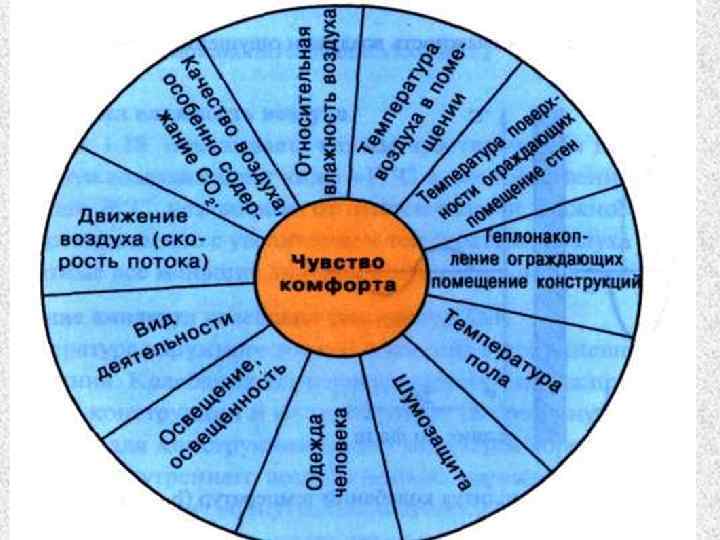 ОПТИМАЛЬНЫЕ ПАРАМЕТРЫ МИКРОКЛИМАТА - сочетание значений показателей микроклимата, которые при длительном и систематическом воздействии на человека обеспечивают нормальное тепловое состояние организма при минимальном напряжении механизмов терморегуляции и ощущение комфорта не менее чем у 80 % людей, находящихся в помещении
