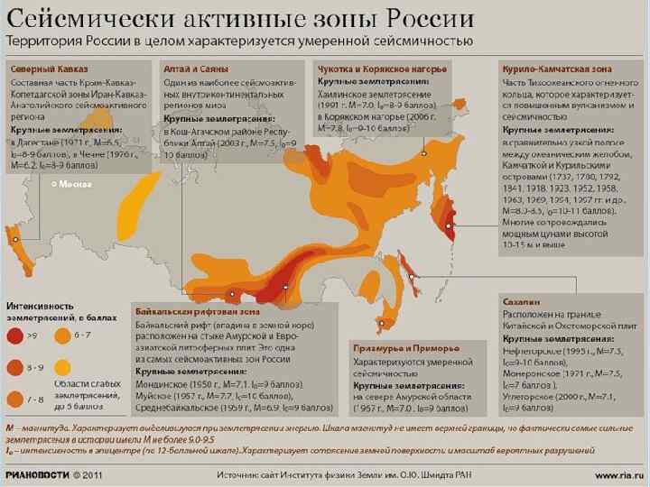 * Самые мощные землетрясения происходят в Курило-Камчатской области на границе блоков земной коры и верхней мантии Тихого океана и Азиатского континента. Зоны очагов землетрясений достигают 600 -700 км в длину. Разрывы, сколы горных пород, возникающие при землетрясениях, вспарывают эти зоны со скоростью около 3, 5 км/с в течение десятков секунд или нескольких минут. Столь же долго продолжаются сами сильнейшие землетрясения, чем они и отличаются от большинства землетрясений в Средней Азии, где время разрушительных колебаний измеряется секундами. Работы по поиску предвестников землетрясений сосредоточены возле Петропавловска-Камчатского и на Южных Курильских островах. Там созданы системы телеметрических сейсмических и наклономерных станций, ведутся повторные геодезические измерения, измерения магнитного поля, сейсмическое просвечивание и др. В краткосрочном прогнозе есть некоторые успехи. Несколько раз делались удачные прогнозы землетрясений на Южных Курильских островах, для чего использовались наблюдения за уровнем подземных вод в скважинах.