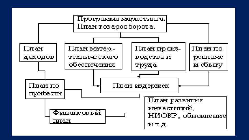 выявить обеспеченность фирмы квалифицированными кадрами и распределять обязанности со всей полнотой несения ответственности за исполнение; оценить финансовое положение в соответствии с намеченными планами, реальность достижения целей с помощью собственных средств и возможность получения кредита со стороны; определить состав маркетинговых исследований по изучению рынка, разработке каналов сбыта, мероприятий по рекламе и пр. ; организовать систему контроля за ходом реализации проекта; подготовить развернутое обоснование, необходимое для привлечения инвесторов к финансированию проекта. Каждая задача может быть решена только во взаимосвязи с другими. Основной центр бизнес плана концентрирование финансовых ресурсов.